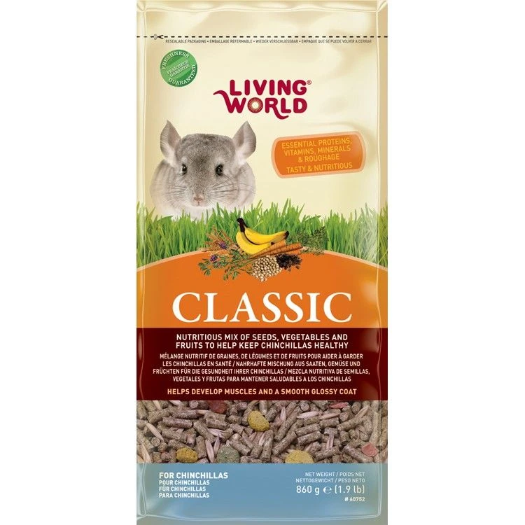 El alimento Clásico para Chinchillas de la marca Living World, provee una dieta completa y equilibrada con la mezcla más selecta de sabrosos granos, forraje, frutas y vegetales. Ademas de ser rico en proteínas, fibras y vitaminas y minerales naturales con el fin de ayudar a satisfacer las necesidades nutricionales de tu Amigal.