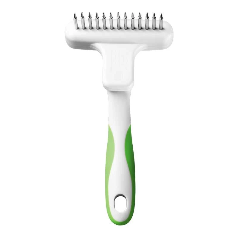 Este clásico del cuidado personal atemporal se adapta a las curvas de sus clientes. Cada diente extralargo contiene un pasador montado con resorte, que se adapta suavemente a los contornos corporales únicos de las mascotas.