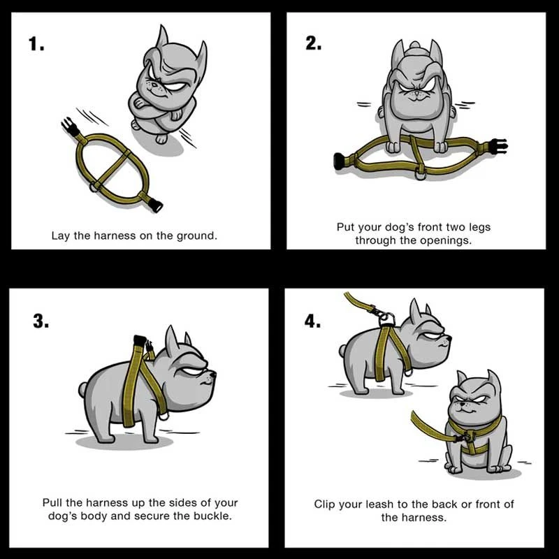 A diferencia de los arneses tradicionales de enganche rápido, dimos un paso más y añadimos un anclaje adicional en la parte frontal. Sujeta tu correa a este anillo D adicional o simplemente úsalo para la placa de identificación de tu perro.