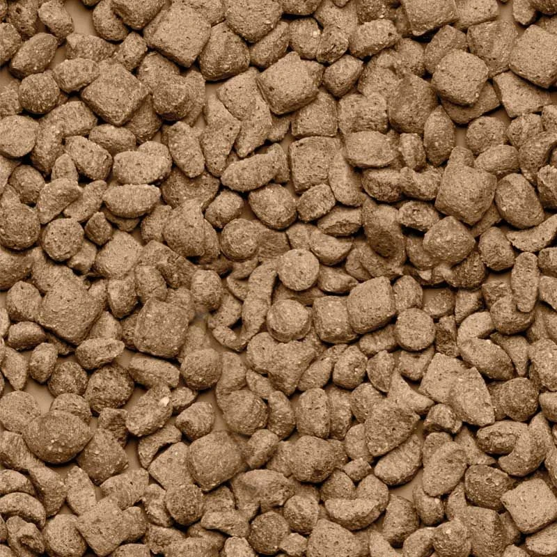 Cereales, subproductos de origen vegetal (Yucca schidigera 0,1%, FOS 0,01%), semillas, legumbres, sustancias minerales, carnes y subproductosanimales (aves de corral 2%), pescados y subproductos de pescado, levaduras (MOS 0,1%), algas (Espirulina 0,01%).Sustancias aromáticas: aroma de tomillo 120 mg, extracto de té verde 70 mg. Valor energético: 2800 Kcal/kg.