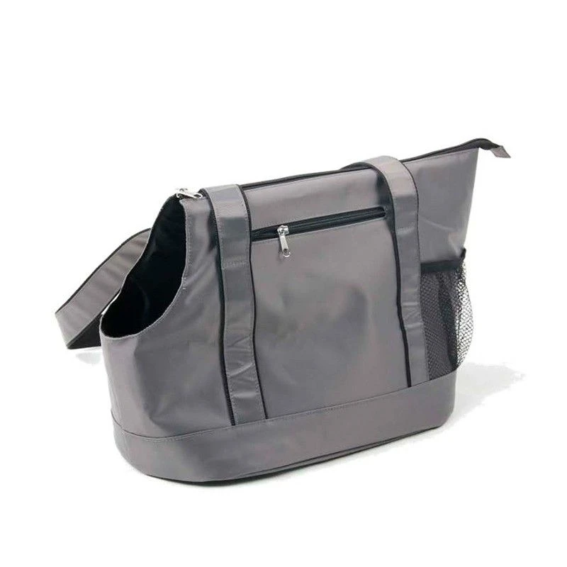 De un diseño moderno con un huesito en su lateral, el bolso «Tote Bag» es gris y de un material resistente e impermeable, con funda acolchada y removible. Incluye correa con gancho de seguridad para que tu mascota vaya segura al interior. Contiene un bolsillo externo con cierre en la parte externa e incluye un bolsillo-soporte para guardar bolsitas de fecas.