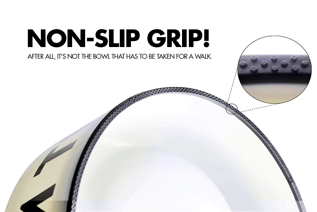 Hecho de polímero de melamina para mayor resistencia y fácil limpieza, nuestro cuenco para perros «negro» también presenta un agarre antideslizante en la parte inferior porque, después de todo, no es el cuenco el que necesita para caminar.