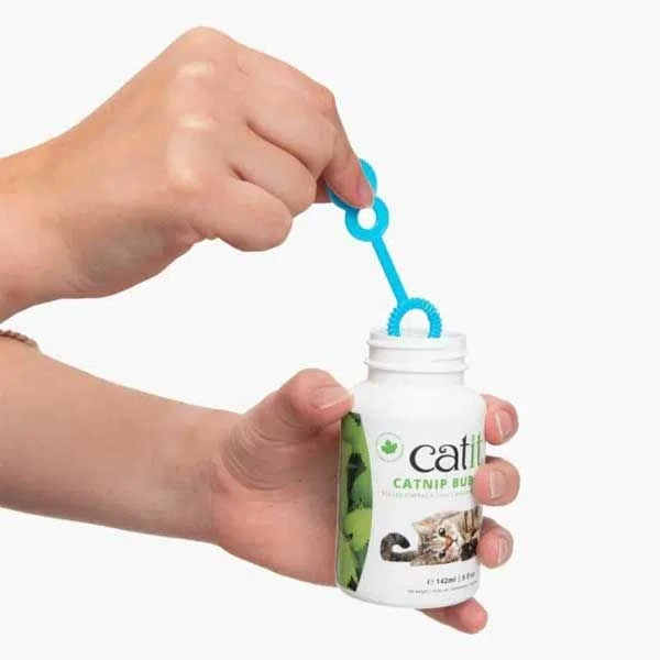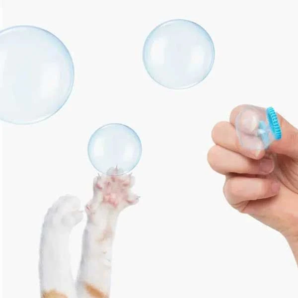 Con las Burbujas de Catnip para Gatos es difícil saber quién se está divirtiendo más, la persona que sopla las burbujas o el gato que las hace estallar.