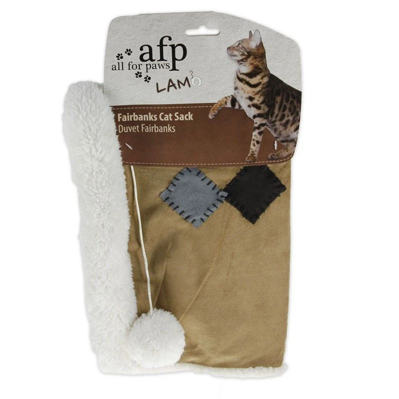 - Al apretarla o moverla, suena igual que una bolsa y en el extremo abierto posee un polar frondoso que da calor y comodidad a tu gatito.