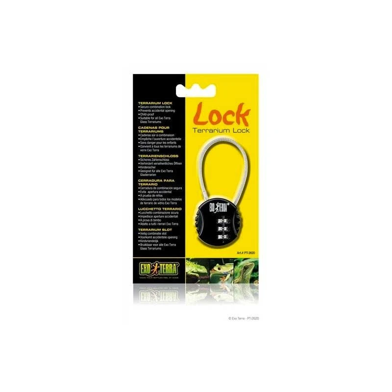 Con un sistema de combinación evita la apertura accidental, compatible con todos los terrarios de vidrio Exo Terra.