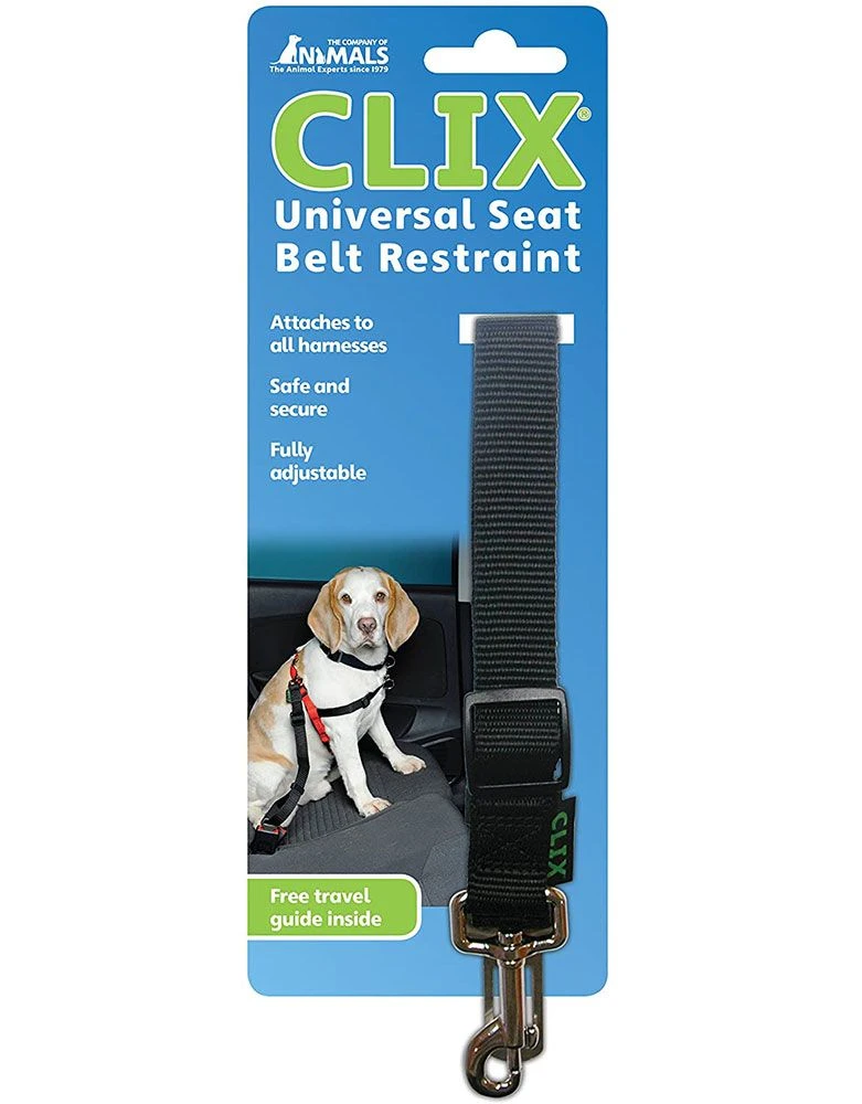 El cinturón de seguridad universal para perros CLIX le permite sujetar con seguridad el arnés de su perro al cierre del cinturón de seguridad en su automóvil para un viaje seguro. ¡Una solución simple para mantener a su perro seguro y cómodo mientras está en movimiento!