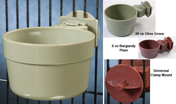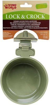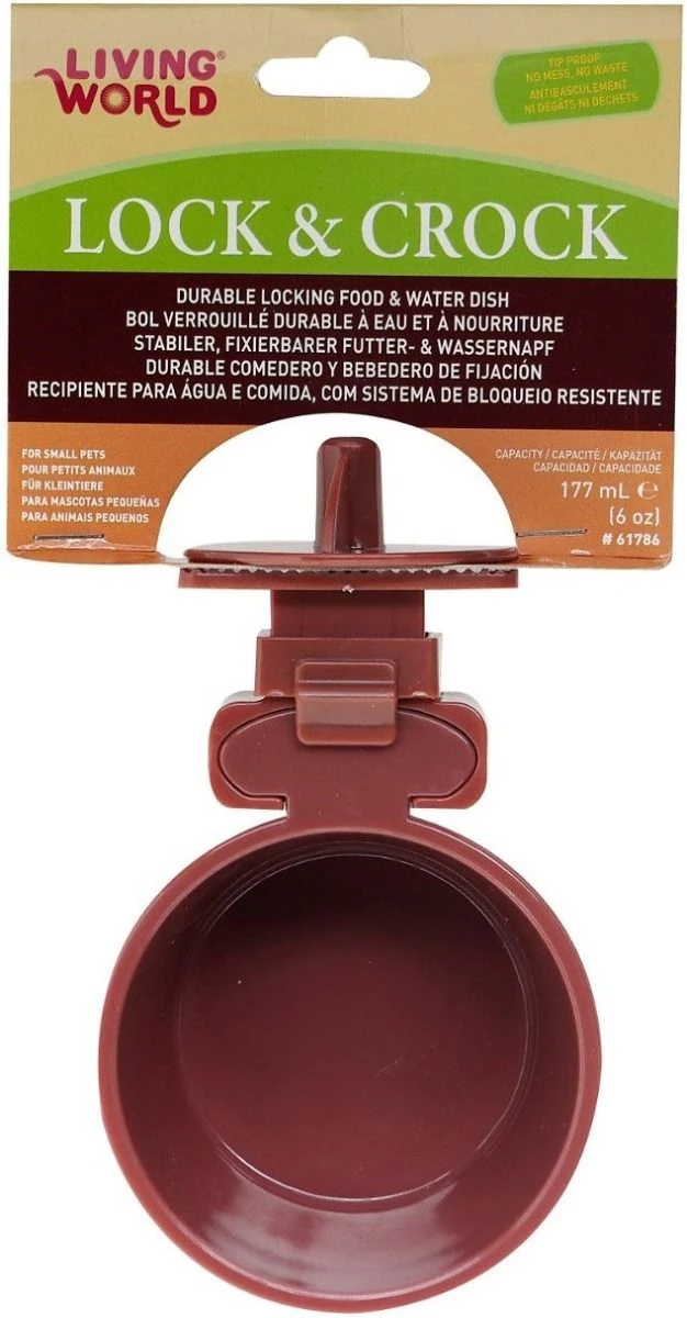 - El comedero y bebedero «Lock & crock» puede ser fijado fácilmente en un lugar elevado y en cualquier hábitat o jaula con distintos tamaños de alambre, ya sean verticales u horizontales