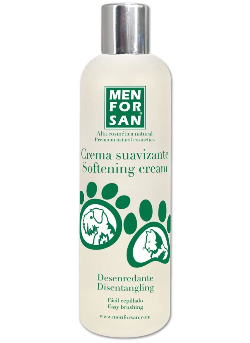 Crema suavizante para perros y gatos con pelajes largos, finos, gruesos o rizados, aunque también mejora los mantos de pelo corto. Contiene agentes antiestáticos que facilitan el peinado después del baño dejando el pelaje sedoso y brillante por lo que se ahorra tiempo y se evitan los tirones y enredos en el cepillado. Los componentes nutritivos de su formula rellenan la fibra capilar de elementos nutritivos esenciales desenredando los nudos y recuperando la elasticidad y suavidad del manto, realzando el brillo y la suavidad al pelaje.