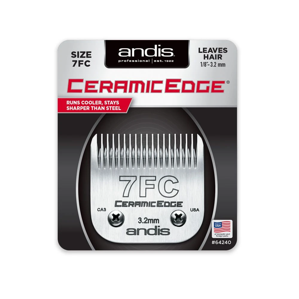 La Cuchilla Desmontable Andis CeramicEdge Tamaño 7FC posee una cuchilla de cerámica que se mantiene más tiempo afilada y funciona mas fría que el acero. Se adapta a las máquinas de corte con hojas desmontables como los modelos Andis: AG, AG2, AGC, AGP, AGC2, AGR, AGR, AGR+, AGRC, AGRV, AGCL, BG, DBLC, MBG, MBG2, SMC. Además se adapta a los modelos Oster 76, 111 y A-5.