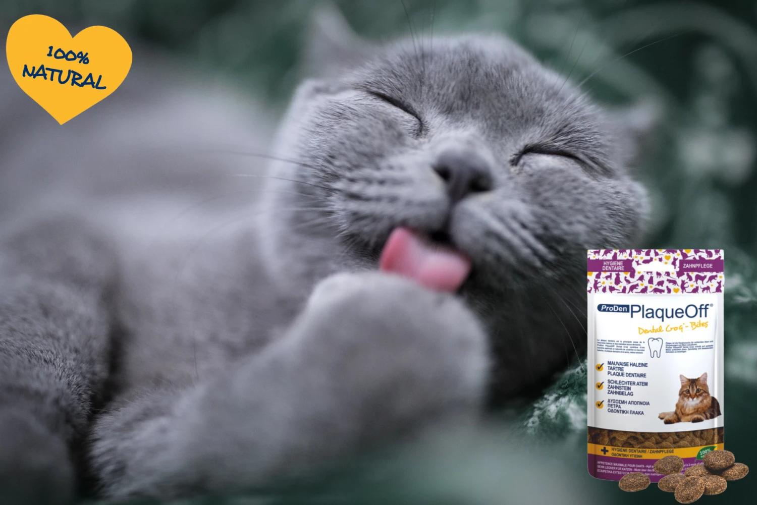- El ingrediente activo es un alga, Ascophyllum nodosum, seleccionada especialmente y cosechada en las costas del Atlántico norte. El producto 100% natural ProDen PlaqueOff® Dental Bites está libre de aditivos y conservantes artificiales y no contiene gluten o azúcares añadidos.
