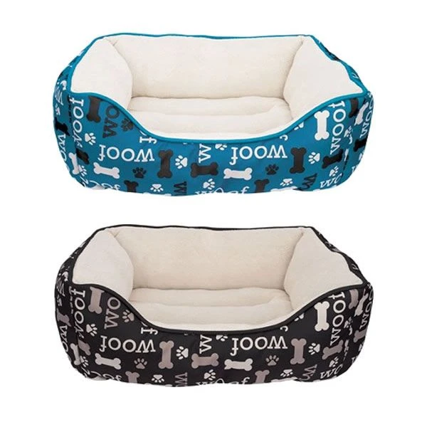 Interior de felpa blanco con tejido exterior de poliéster estampado “woof & bone”