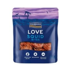 Fish4Dogs Love Squid Bites son Treats para perros de Calamar Nuestros Squid Bites son parte de nuestra gama de treats “Love”. Nuestros treats están hechos de calamar al horno y son ricos en Omega 3 de origen marino, lo que significa que son ideales para pelajes saludables y brillantes, cuidado articular y son altamente digeribles y sabrosos.