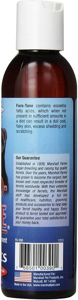 - Furo-Tone contiene ácidos grasos esenciales que, cuando no están presentes en cantidades suficientes en una dieta, pueden producir un pelaje opaco, una piel escamada, exceso de descamación epidérmica y picazón.