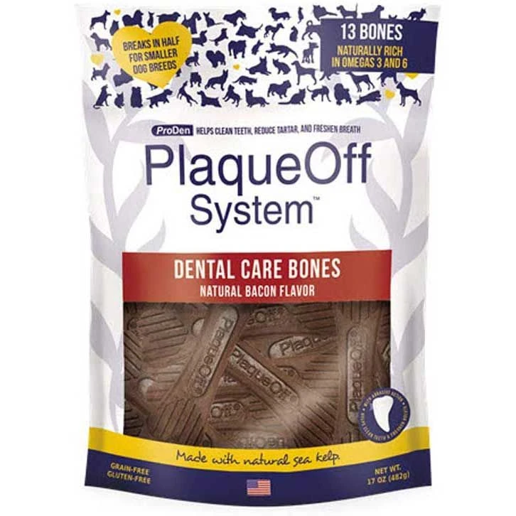 - Los huesos para el cuidado dental del sistema ProDen PlaqueOff® ayudan a limpiar la placa y el sarro por acción abrasiva y sistémica, ayudando a refrescar el aliento de tu mascota.