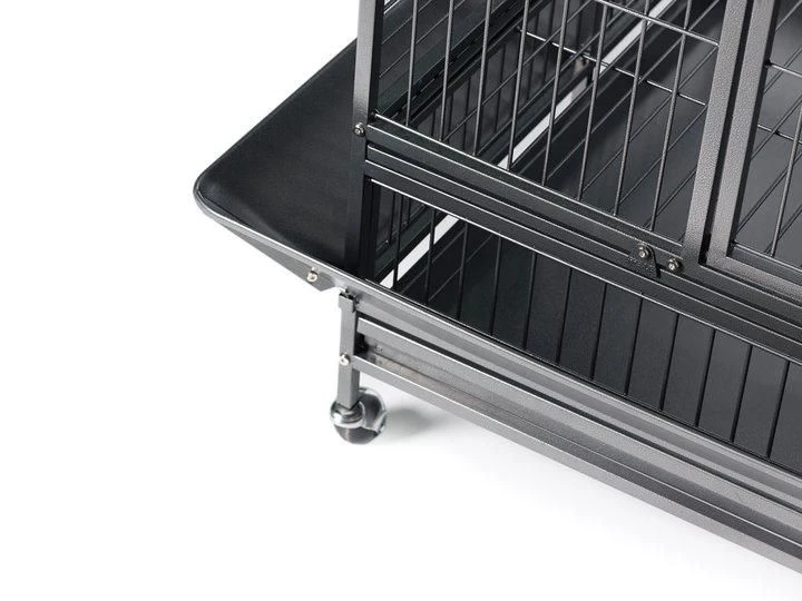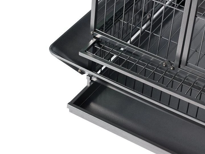- La base del soporte de la jaula cuenta con ruedas para facilitar su desplazamiento.