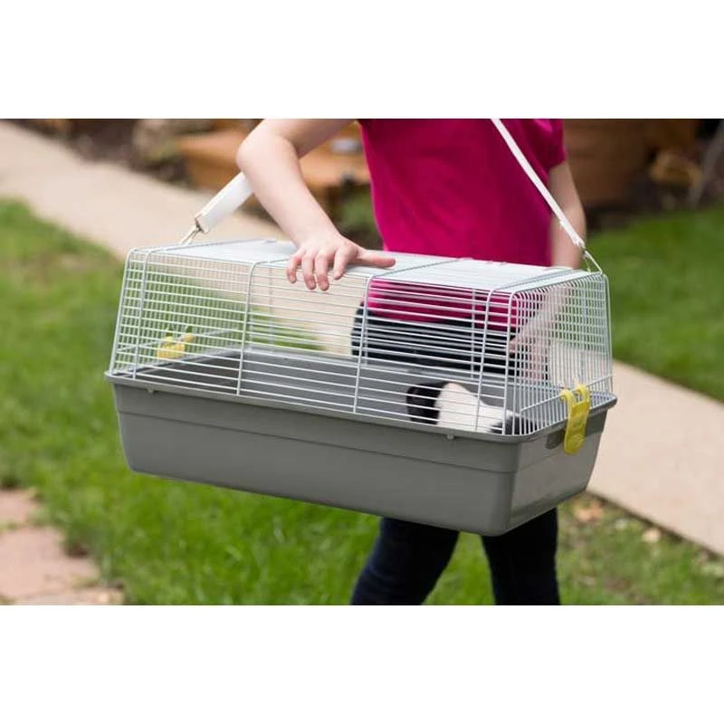 Robusto y práctico, nuestra Jaula Transporte con Correa para Pequeños Animales se puede usar en interiores o exteriores y también como una jaula diaria para mascotas pequeñas, como pequeños conejos o cobayas.
