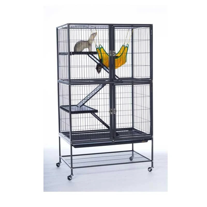 Con dos puertas grandes, puede acceder fácilmente a su mascota mientras que los hurones no pueden abrir estas puertas «a prueba de escape». Las plataformas, la rejilla y la bandeja inferior se quitan fácilmente para una limpieza conveniente. El soporte con ruedas brinda portabilidad de una habitación a otra, mientras que el estante que ahorra espacio contiene juguetes, golosinas y suministros.