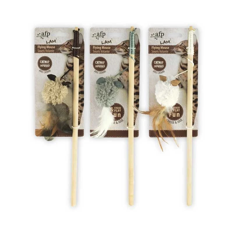 El Juguete Caña de Pescar Flying Mouse de All for Paws busca que pases horas de diversión con tu gato estimulando su desarrollo físico y todos sus sentidos. Impregnado con catnip tu gato se sentirá atraido por este fantástico juguete.