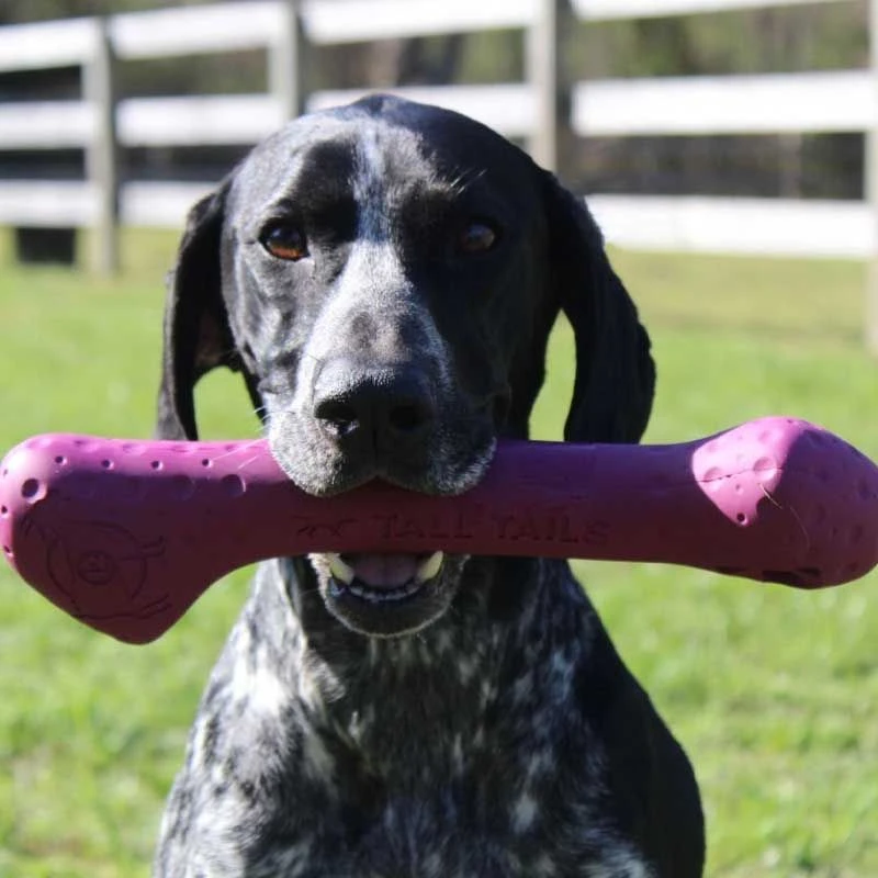 Diferentes perros tienen diferentes estilos de juego y masticación, por lo que diseñamos el Juguete Hueso de Caucho Natural Tall Tails con varias características distintas: compartimentos para snacks que se pueden llenar con su comida favorita, caucho natural resistente para un juego duro y resistente, y un color de alta visibilidad para encontrarlo fácilmente.