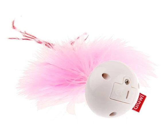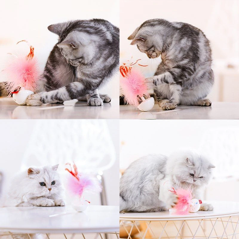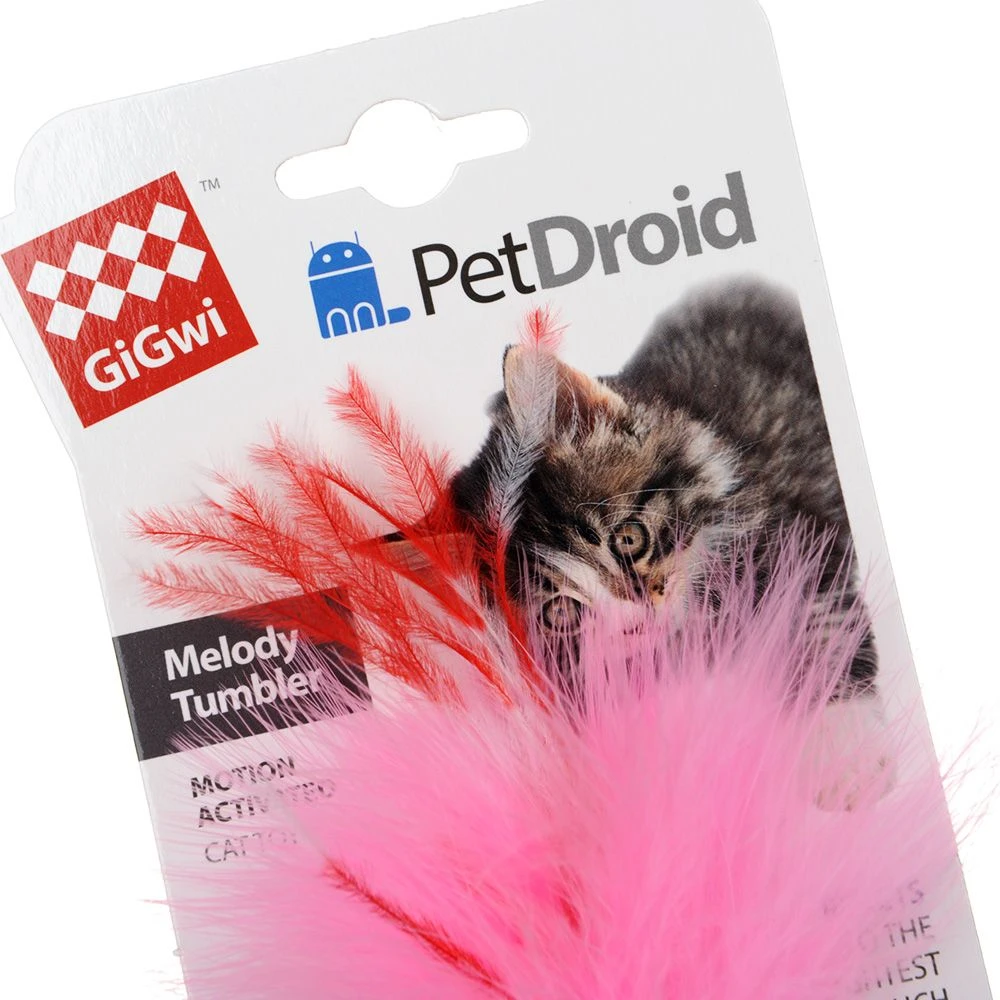 El divertido juguete «Wobble Feather» de la serie Pet Droid cuenta con una pequeña plataforma como «mono porfiado» con llamativas y suaves plumas que reacciona a los movimientos de tu gato y además tiene una melodía de sonidos de pájaros! gracias a un chip de sonido en su interior, que aumenta su atención y estimula su natural instinto de caza. Solo enciéndalo y diviértete junto a tu gatito.
