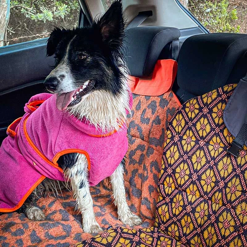 Fabricado en Chile con tela absorbente de microfibra. Es el complemento ideal para los paseos a la playa, para después de pasear en la lluvia o después del baño en casa. Evita que tu perro gotee por todos lados en tu casa o auto y ayuda a que el secado sea más rápido.