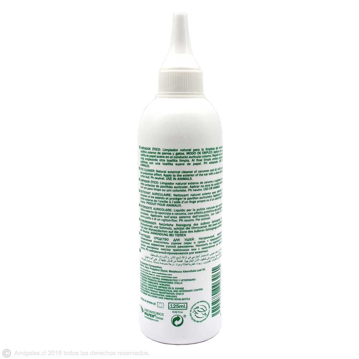 - Higiene auricular: En animales con grandes acúmulos de cerumen y suciedad, con mal olor, aplicar cada 24 horas durante 8 días consecutivos.