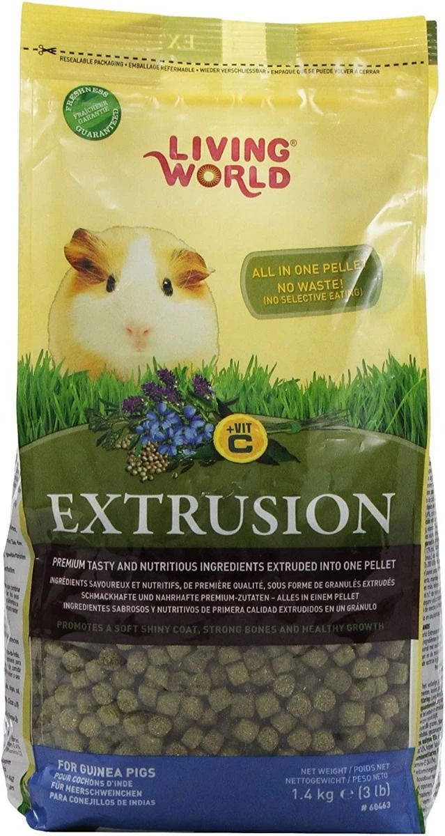 El alimento Extruido para Cuyes de la marca Living World, provee una dieta completa a base de gránulos, que combinan todos los ingredientes nutritivos como proteínas, fibras, vitaminas y minerales necesarios, además de ser sabrosos y saludables para el bienestar de tu Amigal. La extrusion evita el desperdicio del alimento y la alimentación selectiva.
