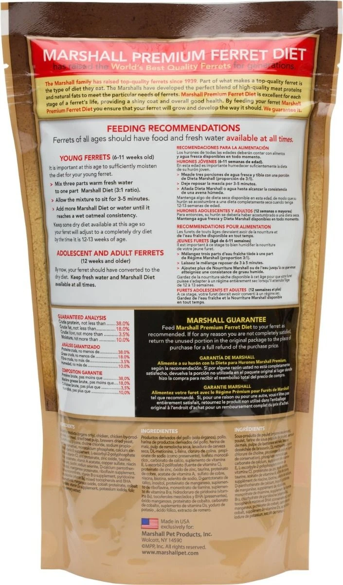 - Dieta Premium con alto contenido de proteínas de aves de corral y especialmente formulada para una nutrición completa de todas las etapas de vida de tu hurón.
