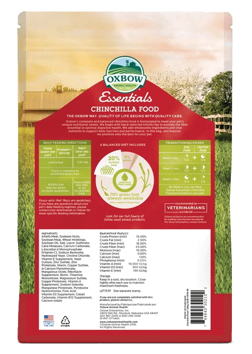 - Semana 4: Alimenta a tu Cuy exclusivamente con Oxbow «Essentials» Alimento para Chinchilla (su alimento nuevo).