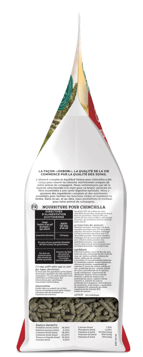 - Contiene alfalfa para satisfacer las necesidades energéticas de las chinchillas de todas las edades. El 70% de la dieta de su chinchilla debe ser heno de hierba.
