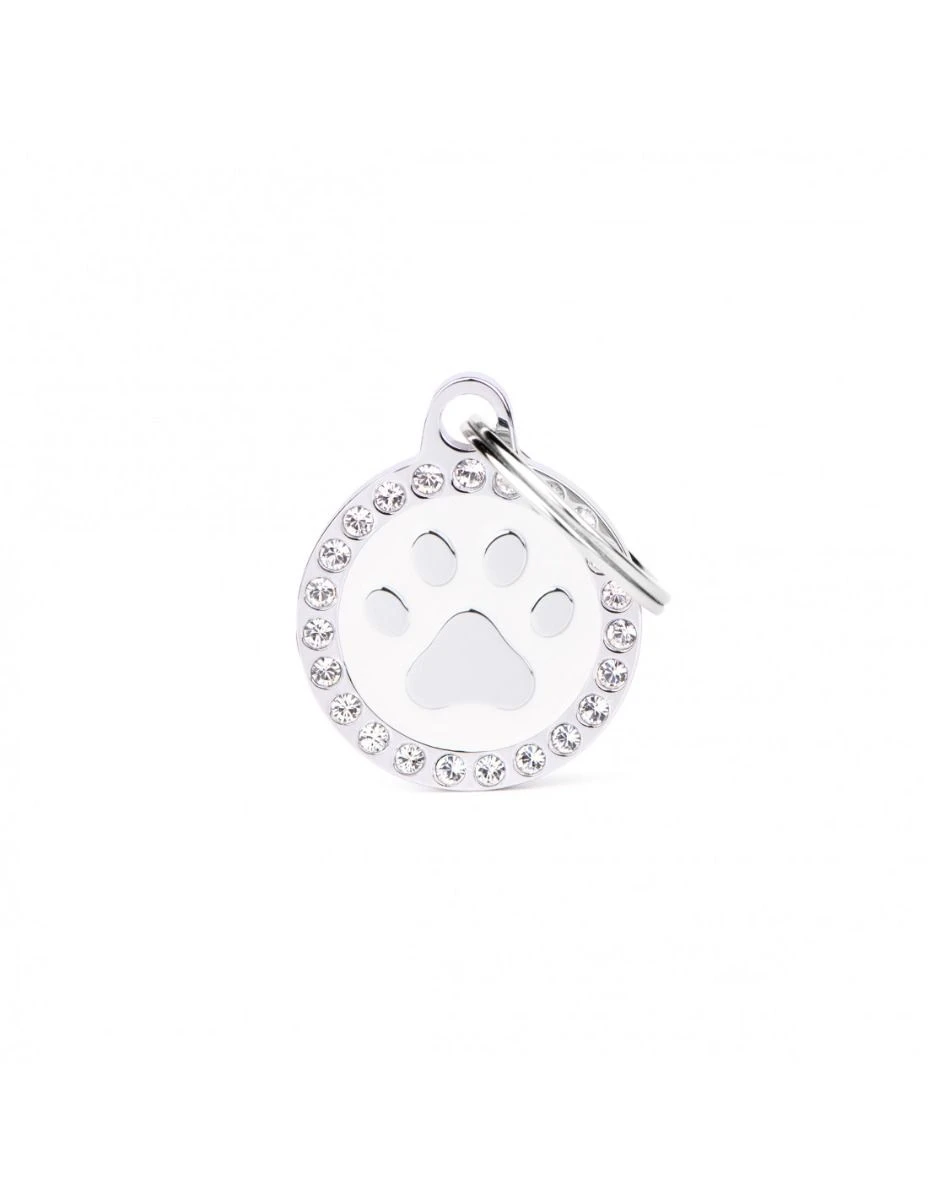 La Placa Glam Swarovski «My Family» Huella Blanco es un producto ideal para identificar a tu mascota pensando en elegancia, precisión y calidad. Cada una de estas placas son una pequeña joya para tu amigal ya que están adornadas con elementos de Swarovski y esmaltadas a mano. Las placas My Family son de origen italiano y se graban directamente en el metal para dar gran durabilidad.
