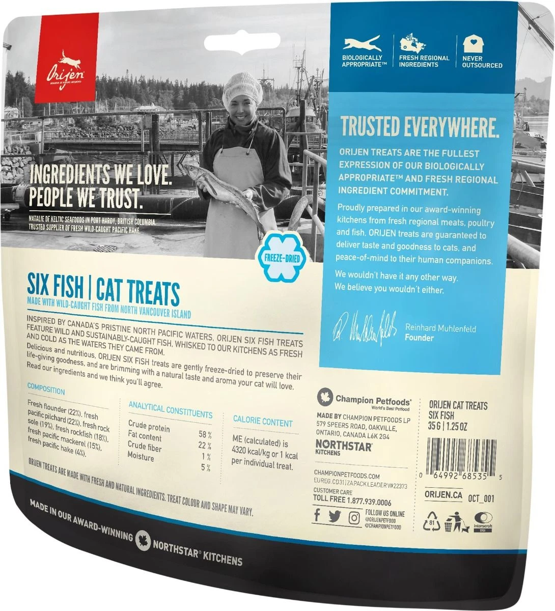La dieta natural de tu gato contiene pocos carbohidratos, ¿Y entonces, porque se incluyen en los premios? Esta es la razón por la que hacemos los premios ORIJEN libres de cualquier grano o carbohidratos – solo contienen la calidad y el sabor puro de la pescado en su estado natural.