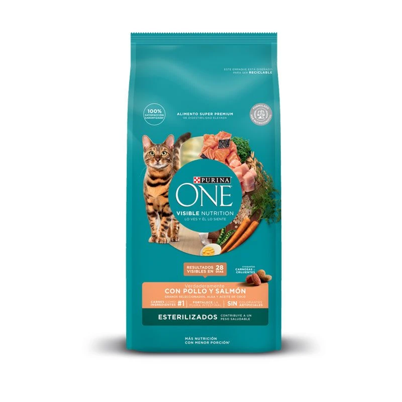 Características principales del alimento para gatos Purina One Pollo y Salmón para Gatos Esterilizados:
