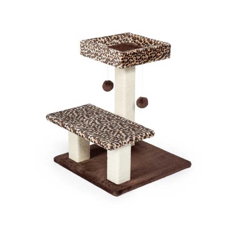2 áreas de descanso – Un lujoso día de estampado de leopardo con soporte más una plataforma adicional. Dos juguetes suaves y colgantes animan a los gatos a jugar.