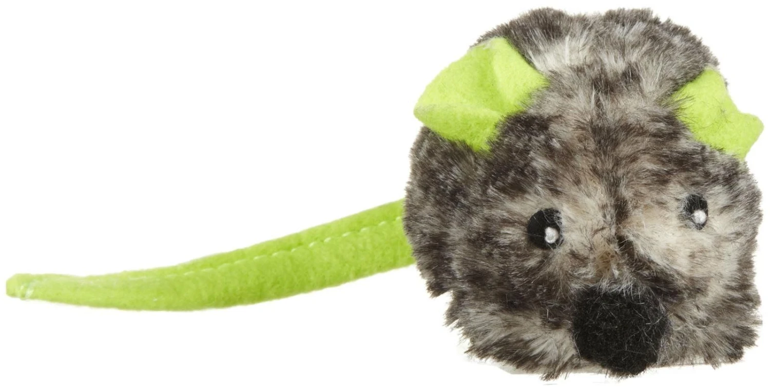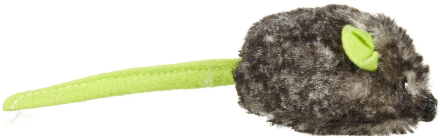 - Peluche de ratón de un tamaño considerable para imitar a una presa y estimular el instinto de caza de tu gato con un «motor» en su interior.