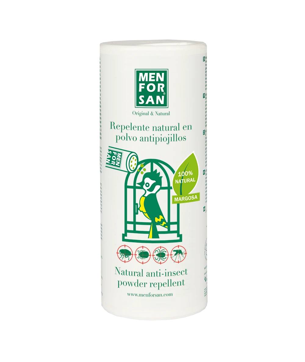 Polvo de uso directo para tratamiento contra toda clase de insectos, piojillos y ácaros que se encuentren en las plumas y también en el entono de las aves (nidos, posaderos, base de la jaula y paredes cercanas.