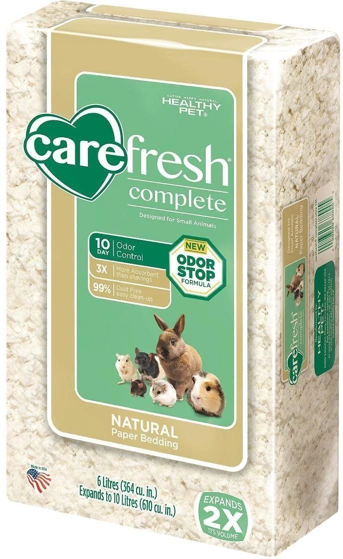 - Coloca entre 2,54 a 7,62 cm de sustrato para camas Carefresh® Blanco en el hábitat de tu mascota dependiendo del número y tipo de mascotas que tengas.