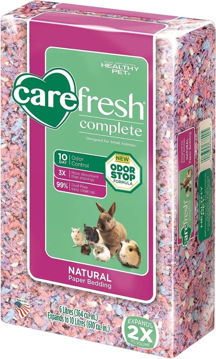 - Coloca entre 2,54 a 7,62 cm de sustrato para camas Carefresh® Confetti en el hábitat de tu mascota dependiendo del número y tipo de mascotas que tengas.