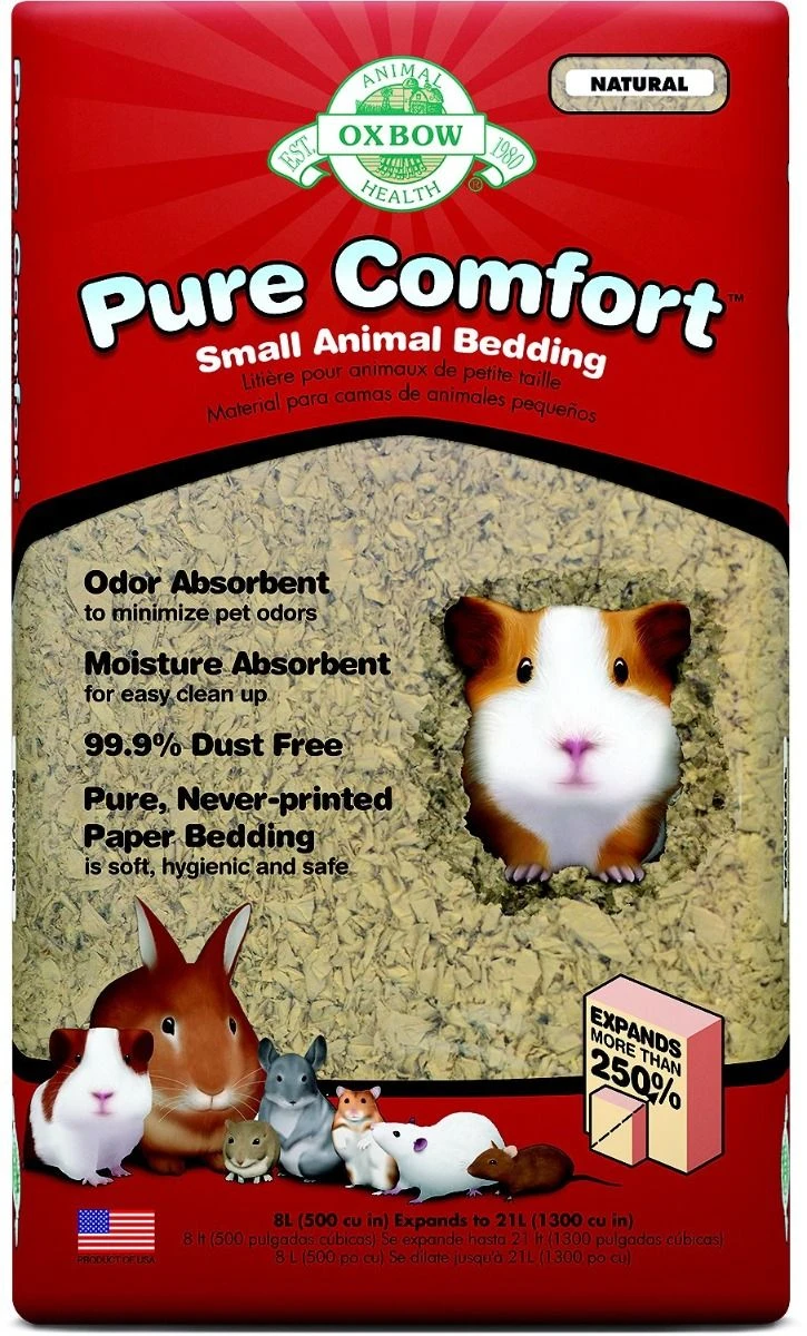 - Coloca entre 2,5 a 7,6 cm de sustrato para camas Pure Comfort sobre el piso del hábitat de tu mascota.