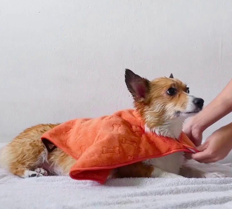 - La toalla viene un con un cierre de cuello ajustable para secar a tu perro de forma segura para prevenir el «movimiento de sacudida» típico cuando están mojados.
