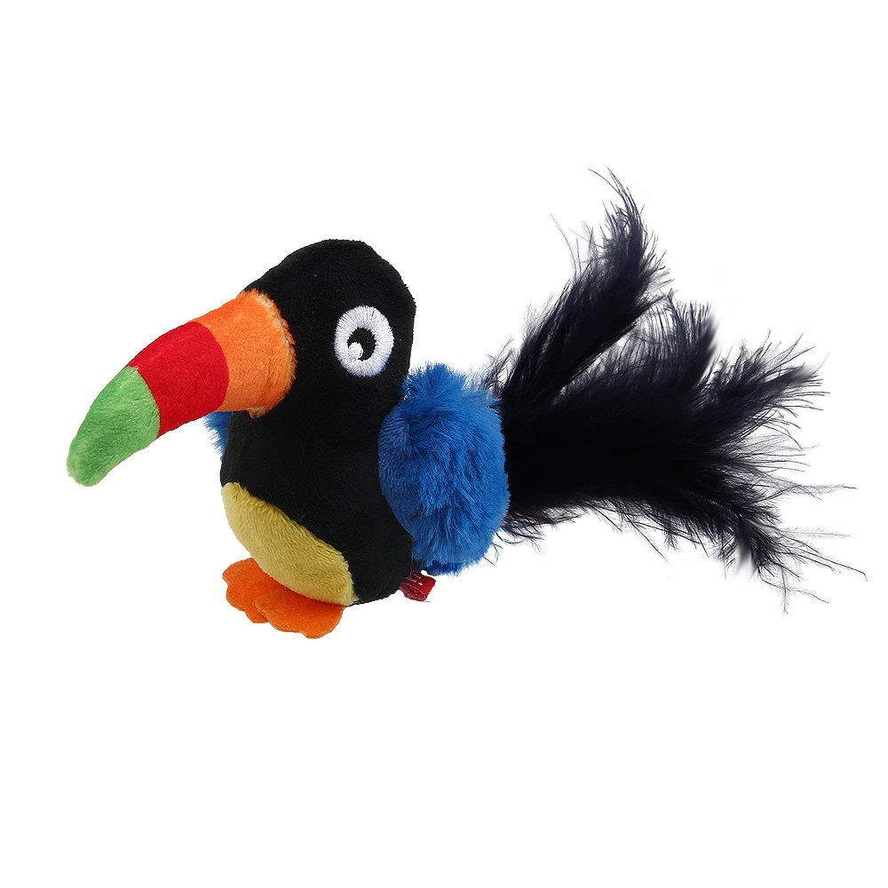 Divertido y realista juguete de animal Tucán de la línea «Melody Chaser» con sonido real que se activa al movimiento. Diseñado para satisfacer el instinto de caza y aumentar la atención de tu gato.