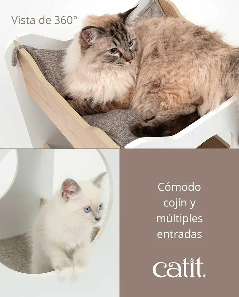 El Vesper Cabana es perfecto para descansar y dormir la siesta. El escondite en la parte inferior está abierto por todos lados para que tu gato no se sienta acorralado.