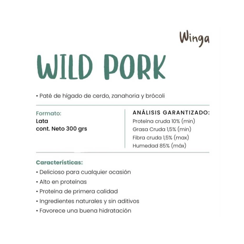Características principales del Winga Paté Wild Pork para Perros: