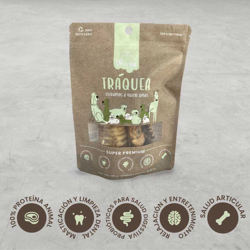 Winga Snack Tráquea para Perros es un snack masticable que mantiene entretenido a tu perro durante largos períodos de manera natural.